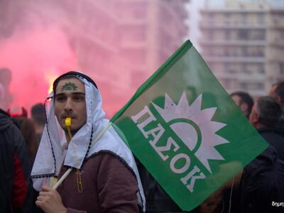 Το Σαββατοκύριακο, όπου κορυφώθηκε το Πατρινό Καρναβάλι, σημαίες του ΠΑΣΟΚ έκαναν ξανά την εμφάνισή τους στην πλατεία Γεωργίου και στο κέντρο της πόλης.