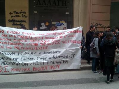 Ομως απέξω είχαν συγκεντρωθεί φοιτητές μέλη της Αλληλεγγύης σε Πρόσφυγες και Μετανάστες και φοιτητικοί σύλλογοι , που σκόπευαν να του θέσουν το ζήτημα της ποιότητας του φαγητού που προσφέρεται στους πρόσφυγες στη Μυρσίνη, καθώς και εκπαιδευτικά ζητήματα. Ο υφυπουργός αναχώρησε μετά την εκδήλωση στο ΕΑΠ για την Μυρσίνη Ηλείας. Η συνέντευξη τύπου θα δοθεί στις 6 στα γραφεία του ΣΥΡΙΖΑ στην Πάτρα.