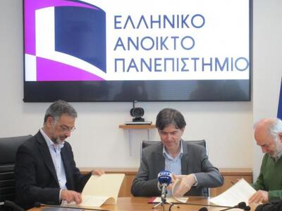 Παρουσία του Υφυπουργού Παιδείας, κ. Δημήτριου Μπαξεβανάκη, ο Πρόεδρος της Δ.Ε. του Ελληνικού Ανοικτού Πανεπιστημίου, Καθηγητής κ. Βασίλης Καρδάσης, και ο Περιφερειακός Διευθυντής Π/θμιας και Δ/θμιας Εκπαίδευσης Δυτικής Ελλάδας, κ. Κωνσταντίνος Γιαννόπουλος υπέγραψαν σήμερα, Τετάρτη 1η Μαρτίου 2017, Πρωτόκολλο Συνεργασίας ανάμεσα στους δύο φορείς. Η υπογραφή έλαβε χώρα στις εγκαταστάσεις του Ε.Α.Π. στην Περιβόλα Πατρών.