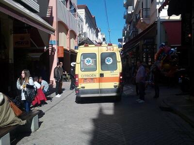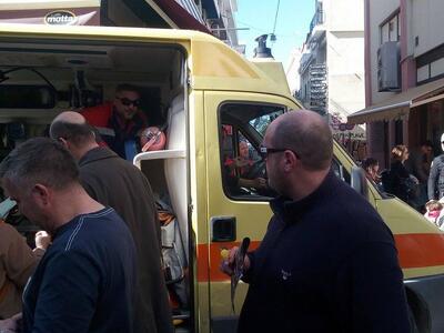 Κατέρρευσε στον πεζόδρομο της Ρήγα Φεραίου γνωστός περιφερόμενος ακορντεονίστας Στο σημείο έσπευσε ασθενοφόρο και δικυκλιστές της ΔΙΑΣ. Το μεσημέρι του Σαββάτου ένοιωσε δυσφορία και έχασε τις αισθήσεις του. Μεταφέρθηκε με ασθενοφόρο στο νοσοκομείο για να του παρασχεθούν οι πρώτες βοήθειες.
