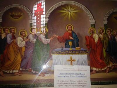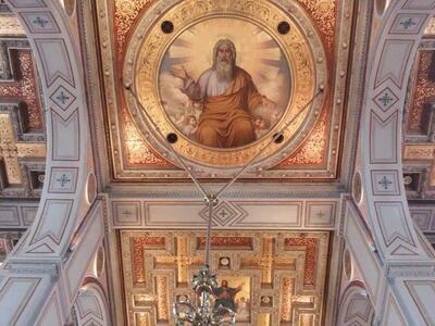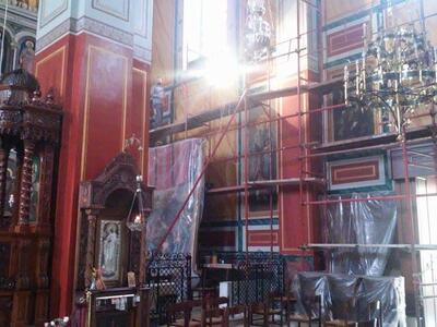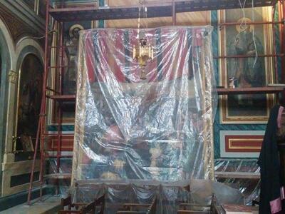 Όπως μπορείτε να δείτε στις φωτό του thebest.gr που ελήφθησαν σήμερα το πρωί, οι αγιογραφίες στην οροφή του ναού έχουν συντηρηθεί και φωτιστεί, η δεξιά πλευρά του ναού, στο κομμάτι της αγιογράφησης και της συντήρησης των πινάκων ζωγραφικής εξελίσσεται αυτές τις μέρες και βαίνει προς ολοκλήρωση.