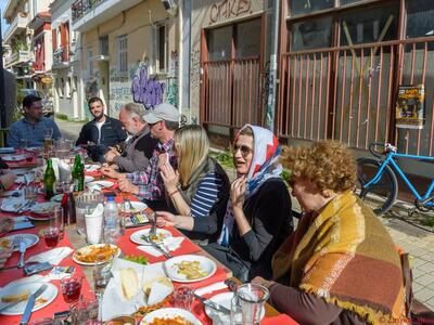 Μετά την ολοκλήρωση της ξενάγησης, πολλοί από τους συμμετέχοντες κατέληξαν στον πεζόδρομο της Ηφαίστου για κρασάκι, μπυρίτσα, ουζάκι με μεζέ, χαλαρή κουβεντούλα και ανταλλαγή εντυπώσεων. Μια υπέροχη κατάληξη μετά από μια πραγματικά υπέροχη περιήγηση".