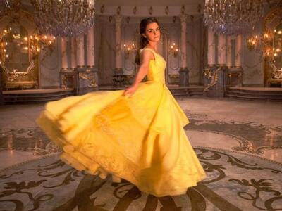 Από τα πιο αναγνωρίσιμα φορέματα στην ιστορία του σινεμά και των κινούμενων σχεδίων είναι ασυζητητί η τουαλέτα στον πρώτο ρομαντικό χορό της ηρωίδας με το τέρας. Αυτό το ρούχο έχει το δικό του πρωταγωνιστικό ρόλο στο φιλμ. To περίφημο κίτρινο μάξι φόρεμα είναι φτιαγμένο από μετάξι, με «φύλλα» οργάντζας ώστε να μεταδίδει μια αίσθηση φωτεινότητας και ελαφράδας μαζί, σύμφωνα με τη σχεδιάστρια κοστουμιών της ταινίας Ζακλίν Ντουράν. Μάλιστα δεν χρησιμοποιήθηκε κορσές γιατί η Μπελ είναι μια δραστήρια και δυναμική πριγκίπισσα που δεν μπορεί να καταπιέζεται. Τα γοβάκια της είναι εμπνευσμένα από το στυλ του 18ου αιώνα και διαθέτουν χρυσά λουλούδια ζωγραφισμένα στο χέρι. Ολη εμφάνιση κατά την Εμμα Γουότσον αποτελεί μια «φυγή» από την πεζή πραγματικότητα, είναι το έμβλημα της απόδρασης στον παραμυθένιο έρωτα. Το φόρεμα δίνει το σύνθημα του τι συμβαίνει, δηλαδή πως η Μπελ και το Τέρας ερωτεύονται.