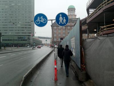 Όταν τώρα για το οποιοδήποτε λόγο π.χ. εργασίες, πρέπει να κλείσει για κάποιες ώρες ή μέρες, υπάρχει και πάλι πρόβλεψη. Τα συνεργία που εκτελούν τα έργα φροντίζουν να «κόψουν» ένα κομμάτι του δρόμου όπου κινούνται τα Ι.Χ., να το διαχωρίσουν, να το σηματοδοτήσουν κατάλληλα και να το παραχωρήσουν στους ποδηλάτες (συνήθως αυτό είναι ξεχωριστό κομμάτι από εκείνο που δίνεται τους πεζούς). Όταν τα έργα τελειώσουν τα διαχωριστικά απομακρύνονται όπως και η σήμανση και ξαναδίνονται στην κυκλοφορία οι ποδηλατόδρομοι.