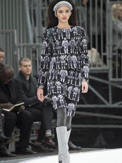 Παριζιάνικη Εβδομάδα Μόδας δίχως Chanel show δεν γίνεται. Για τον επόμενο χειμώνα ο θρυλικός οίκος παρουσίασε ως αβάν γκαρντ φόντο έναν πελώριο λευκό πύραυλο στο Grand Palais, ενώ τα μοντέλα υπέκυψαν σε μια εικόνα σύγχρονης Μπαρμπαρέλα. Το διαστημικό ύφος της συλλογής αναδείκνυε το άφθονο ασημί χρώμα, οι γκλίτερ λεπτομέρειες, τα φουτουριστικά γυαλιά- καθρέφτες αλλά και τα κρύσταλλα σβαρόβσκι πάνω σε μάλλινες στέκες και στα περίφημα μπουκλέ των ταγιέρ και των φορεμάτων. Οι διασημότητες έδωσαν βέβαια το παρών, ως μεγάλες συμπάθειες του δαιμόνιου και ακαταπόνητου «κάιζερ» Καρλ Λάγκερφελντ.