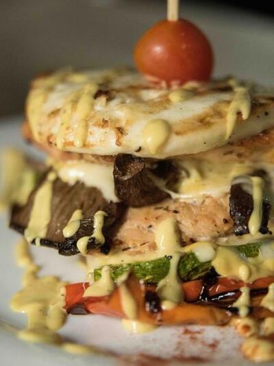 Κοτόπουλο ναπολεόν με ψητά λαχανικά, ταλαγάνι και σως μουστάρδας. Διαιτητικό και γευστικό μαζι!