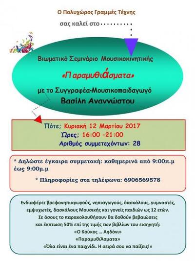 Το εργαστήρι θα διεξαχθεί την Κυριακή 12 Μαρτίου από 4μμ έως 9μμ.