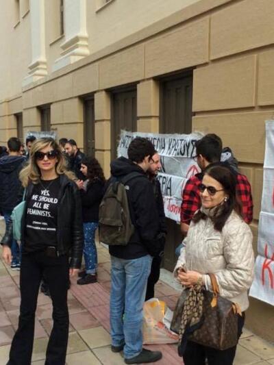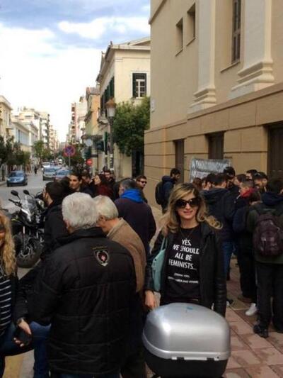 Μεταξύ των παριστάμενων πολιτών στη διαμαρτυρία στο Ειρηνοδικείο Πάτρας, ήταν για ακόμα μια Τετάρτη και η Βίβιαν Σαμούρη, Δημοτική Σύμβουλος Πατρέων, επικεφαλής της παράταξης «"Όλοι μαζί, για την Πάτρα".