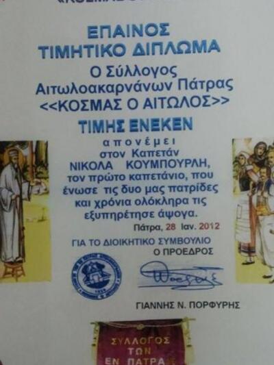 Κύματα, λιμάνια, κίνδυνοι, όλα χωράνε στη θάλασσα «την οποία πρέπει να σέβεσαι, αλλά όχι να φοβάσαι», μας λέει. Η γνωριμία μαζί του τυχαία και φυσικά έγινε στους χώρους του Κεντρικού Λιμεναρχείου της Πάτρας. Άλλωστε λόγω της εμπειρίας του είναι ένα πολύτιμος σύμβουλος σε ζητήματα που έχουν να κάνουν με επιχειρήσεις εντοπισμού αγνοουμένων. Ο καπετάν Νίκος είναι ένας έμπειρος άνθρωπος της θάλασσας, λέει ο (πρώην πια) Κεντρικός Λιμενάρχης Πατρών Δημήτρης Κυριακουλόπουλος και προσθέτει: «Είναι ο τεχνικός μας σύμβουλος κατά κάποιον τρόπο». Τον συναντήσαμε στο Αντίρριο και το "ταξίδι" ξεκίνησε.