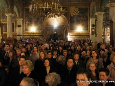 "Σε κατανυκτικό κλίμα τελέστηκε την Κυριακή 12.3.2017, ὁ Γ’ Κατανυκτικὸς Ἑσπερινὸς στόν κατάμεστο ἀπό πιστούς Ἱερό Ναό Παντανάσσης Πατρῶν, όπως αναφέρει η Μητρόπολη Πατρών. "Στὸν Κατανυκτικὸ Ἑσπερινὸ ἐχοροστάτησε ὁ Σεβασμιώτατος Μητροπολίτης Πατρῶν κ.κ. Χρυσόστομος, συγχοροστατοῦντος τοῦ Θεοφιλεστάτου Ἐπισκόπου Κερνίτσης κ. Χρυσάνθου, τῇ συμμετοχῇ πλειάδος Ἱερέων ἐκ Πατρῶν.