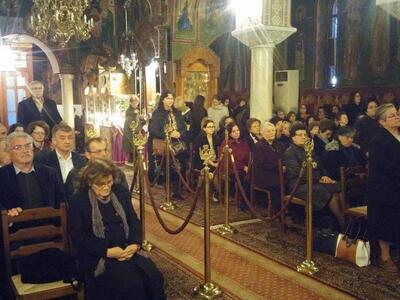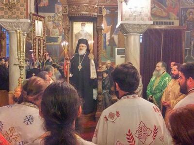 Σε κλίμα κατάνυξης και χοροστατούντος του Μητροπολίτη Βρεσθένης Θεοκλήτου, τελέστηκε χθες το απόγευμα στον Ιερό Ναό Αγίων Κωνσταντίνου και Ελένης & Θεοπρομήτορος Άννης, ο τρίτος κατανυκτικός Εσπερινός. Τους ύμνους απέδωσε χορωδία Ιεροψαλτών υπό τη διεύθυνση του Μουσικοδιδασκάλου Βασιλείου Μπίκου, ενώ τον Θείο Λόγο κήρυξε ο Πανοσιολογιότατος Αρχιμανδρίτης π. Αχίλλιος Τσούτσουρας, Πρωτοσύγκελος Ιεράς Μητροπόλεως Λαρίσης και Τυρνάβου, με θέμα: «Ο πόθος τής ψυχής».