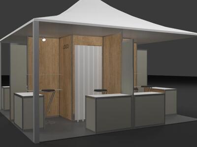 Τα περίπτερα που θα αναπτυχθούν στην πλατεία Γεωργίου για να υποδεχθούν τα Αχαϊκά προϊόντα και τις Επιχειρήσεις, θα είναι παγόδες, υψηλών αισθητικών προδιαγραφών, σαν την εικονιζόμενη παρακάτω: