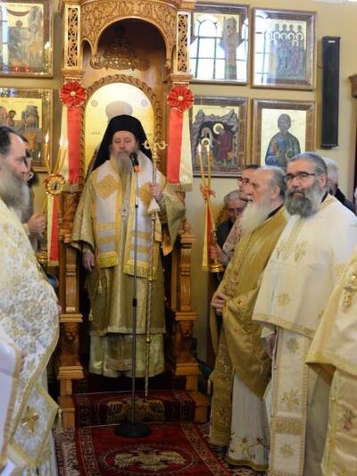 Ἀνήμερα 17.3.2017, τήν Προηγιασμένη Θεία Λειτουργία ἐτέλεσε ὀ Θεοφιλέστατος Ἐπίσκοπος Κερνίτσης κ. Χρύσανθος καί ὡμίλησε ἐπικαίρως, ἐν πληθούσῃ Ἐκκλησίᾳ.»
