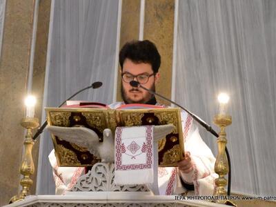 Ὁ Σεβασμιώτατος στὸ κήρυγμά του ἀνεφέρθη ἀνέλυσε τόν λόγον τοῦ Κυρίου «Ὃστις θέλει ὁπίσω μου ἐλθεῖν, ἀπαρνησάσθω ἑαυτόν καί ἀράτω τόν Σταυρόν αὐτοῦ καί ἀκολουθείτω μοι». Μίλησε γιά τήν ἀνάγκη ἀπαρνήσεως τοῦ ἑαυτοῦ μας καί τοῦ κόσμου, ἐάν ἐπιθυμοῦμε πραγματικά νά φθάσωμε νά προσκυνήσωμε τόν Ἐσταυρωμένο Κύριο μας καί νά Τόν δοξάσωμε Ἀναστάντα ἐκ τῶν νεκρῶν. Ἐπίσης καλωσόρισε τόν Θεοφιλέστατο Ἐπίσκοπο Σίμων καί τόν Διάκονο Θεόδωρο ἐκ Ρωσίας, οἱ ὁποῖοι ἒχουν δεσμούς μέ τήν Πάτρα, ἀφοῦ ἒχουν σπουδάσει στό Πανεπιστήμιο Πατρῶν".