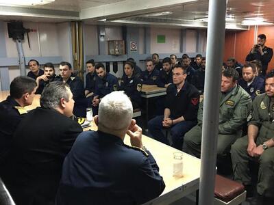Ο Υπουργός Εθνικής Άμυνας Πάνος Καμμένος, συνοδευόμενος από τον Αρχηγό ΓΕΕΘΑ Ναύαρχο Ευάγγελο Αποστολάκη ΠΝ και τον Αρχηγό Στόλου Αντιναύαρχο Ιωάννη Παυλόπουλο ΠΝ, πραγματοποίησε τη Δευτέρα το πρωί επίσκεψη στη Φρεγάτα «ΛΗΜΝΟΣ», η οποία εκτελεί καθήκοντα ''πλοίου επιχείρησης φυλακής σκοπούντος'' που σημαίνει ότι πλέει σε πλήρη ετοιμότητα στο Αιγαίο προκειμένου να παρέμβει αν παραστεί ανάγκη.