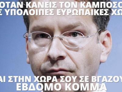 Καταπληκτική η τρολιά Ντάισελμπλουμ ομολογουμένως, χτύπησε τον ελληνάκο εκεί που πονάει και τον έκανε τούρμπo