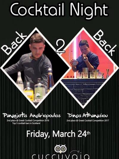 Cocktail Night back2back, με τους βραβευμένους bartenders Παναγιώτη Ανδριόπουλο και Ντίνο Αθανασίου!