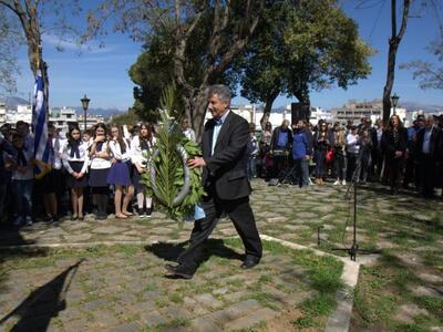 Ξεκίνησαν σήμερα και κορυφώνονται αύριο οι εκδηλώσεις στην Πάτρα για την Επέτειο της 25ης Μαρτίου. Μαθητές του 3ου Γυμνασίου Πατρών ανάγνωσαν τον όρκο Αγωνιστών 1821 στην πλατεία Αγίου Γεωργίου, όπου κατατέθηκε και στεφάνι από τον Δήμαρχο Πατρέων.