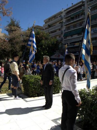 Νωρίτερα κατατέθηκαν στεφάνια στο Μνημείο Πεσόντων στην Πλατεία Εθνικής Αντίστασης (βλ. Όλγας) από αντιπροσωπείες φοιτητών, σπουδαστών, μαθητών.