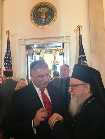 Τους Έλληνες προσκεκλημένους υποδέχθηκαν ο Αμερικανός πρόεδρος Ντόναλντ Τραμπ, ο αντιπρόεδρος Μάικλ Πενς αλλά και ο ελληνικής καταγωγής προσωπάρχης του Λευκού Οίκου, Ράινς Πρίμπους.