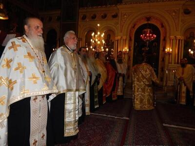 "Στὸν Κατανυκτικὸ Ἑσπερινὸ ἐχοροστάτησε ὁ Σεβασμιώτατος Μητροπολίτης Πατρῶν κ.κ. Χρυσόστομος, συγχοροστατοῦντος τοῦ Θεοφιλεστάτου Ἐπισκόπου Κερνίτσης κ. Χρυσάνθου, τῇ συμμετοχῇ πλειάδος Ἱερέων ἐκ Πατρῶν καί τῆς εὐρύτερης περιοχῆς τῆς Ἱερᾶς Μητροπόλεως.