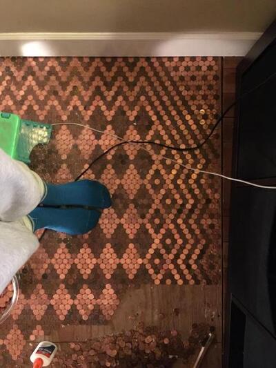 Η Τόνια Τούνερς είναι από το Πόρτλαντ του Όρεγκον. Ως Αμερικανή, είναι θιασώτης του DIY (do it yourself - κάνε το μόνος σου). Είχε να αντιμετωπίσει το πρόβλημα της αντικατάστασης του παρκέ σ' ένα δωμάτιο του σπιτιού της. Κατέληξε σε μια ευφυή -πραγματικά ευφυή- λύση. Και μας έδωσε ιδέα τι να κάνουμε αν βρούμε ένα σωρό κέρματα, ξεχασμένα σε μια ντουλάπα του δικού μας σπιτιού.