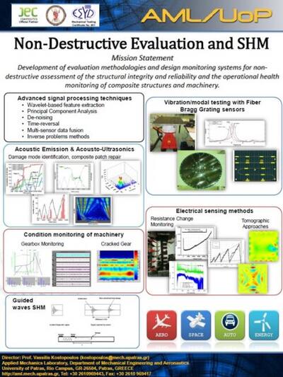 • Μη-καταστροφικές μέθοδοι ελέγχου (υπέρηχοι, ακουστική εκπομπή, φασματική ανάλυση, πλέγματα ινών Bragg, θερμογραφία) παρακολούθηση δομικής ακεραιότητας, μεθοδολογίες συγχώνευσης δεδομένων