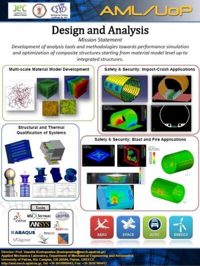 • Σχεδιασμός και Βελτιστοποίηση των σύνθετων δομών, σχεδιασμό σε κόπωση και την προσέγγιση ανοχής βλάβης