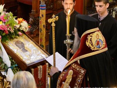 Ὁ Σεβασμιώτατος στό κήρυγμά του ὡμίλησε γιά τήν προστασία τῆς Παναγίας μας στόν καθένα μας, στήν πόλη μας, καί στήν Πατρίδα μας γενικώτερα καί εὐχήθηκε ὃπως διά πρεσβειῶν Της, ἀξιωθῶμεν νά προσκυνήσωμε τά Ἂχραντα Πάθη καί νά ἑορτάσωμε τήν ἒνδοξον Ἀνάστασιν τοῦ Κυρίου ἡμῶν Ἰησοῦ Χριστοῦ."