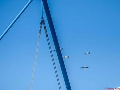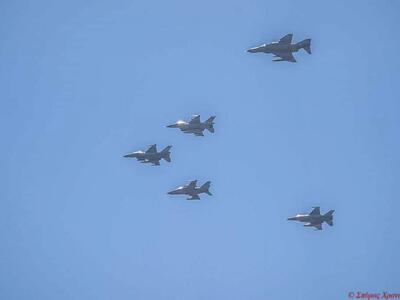 Συγκεκριμένα, περί ώρας 12:30-12:35, σχηματισμός αεροσκαφών αποτελούμενος από 1 F-16 Blk 50 της ΠΑ, 1 F-16 Blk30 της IAF, 1 AMX της ITAF και 1 F-4E της ΠΑ, εκτέλεσε 2 διελεύσεις άνωθεν του Μνημείου της Ακρόπολης και ακολούθως περί ώρας 12:45 διήλθε άνωθεν πορθμού Ευρίπου και περί ώρας 13:00 άνωθεν γέφυρας Ρίου-Αντιρρίου.