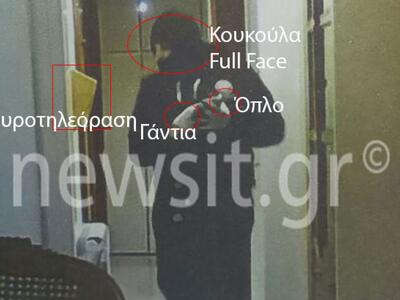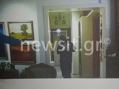 Είναι η στιγμή που ο γιος της 64χρονης που έζησε ώρες τρόμου στο σπίτι της στο Παλαιό Φάληρο, έχει ανακαλύψει αργά το βράδυ της Δευτέρας, ότι ο 4ος ληστής ήταν επι 14 ώρες κρυμένος στην ντουλάπα του σπιτιού του! Ο ληστής έχει βγει από την κρυψώνα του και με προτεταμένο το όπλο κοιτάζει την θυροτηλεόραση για να δει αν είναι κανείς στην είσοδο της πολυκατοικίας και ο γιος της 64χρονης φαίνεται να χειρονομεί! Ο ληστής, φοράει γάντια στα χέρια του και κουκούλα fullface και έχει γυρισμένη την πλάτη του στην πόρτα του σπιτιού και είναι σε κατάσταση άμυνας.