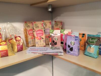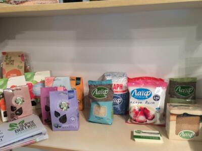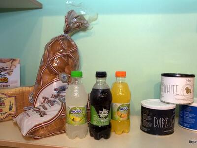 Τα ράφια του περιπτέρου ήσαν γεμάτα από προϊόντα των επιχειρήσεων και παραγωγών: ποτοποιίεςΛΟΥΚΑΤΟΣ, VANTANA, CAMARIS, ΚΑΣΤΡΟ, οινοποιίες ΑΓΓΕΛΟΥ ΡΟΥΒΑΛΗ, ΓΙΑΝΝΟΠΟΥΛΟΙ, ΔΗΜΑΚΟΠΟΥΛΟΥ, ΚΟΛΥΠΕΡΑ, ΚΑΡΑΝΙΚΟΛΑ, ΠΑΡΠΑΡΟΥΣΗ, γλυκά κουταλιού ΙΑΜΒΗ και ΠΑΝΑΓΟΠΟΥΛΟΣ, προϊόντα ΖΥΜΗΣ ΠΑΠΑΝΔΡΕΟΥ, φύλλο ΚΑΒΒΑΔΙΑΣ, λάδι GALATIANO και ΣΩΡΡΑ, υερτροφές REZOS, ζυμαρικά ΤΟ ΠΑΡΑΔΟΣΙΑΚΟΝ, ΡΟΔΙ ΦΑΡΡΩΝ, ζάχαρι και όσπρια ΛΑΪΦ, αρτοποιήματα ΔΕΡΒΙΣΗ, αναψυκτικά ΛΟΥΞ, μπύρα ORA, σαπούνια ELEAMED.