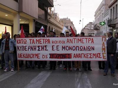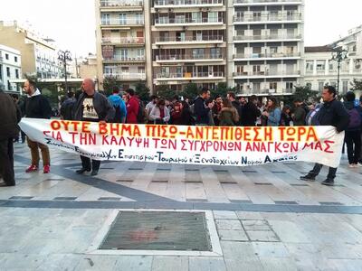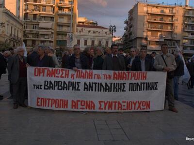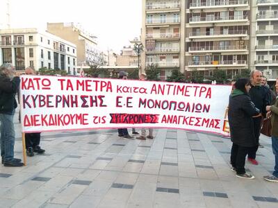 Η συγκέντρωση και πορεία έγινε κατά των νέων μέτρων ύψους 3,6 δις ευρώ που συμφωνεί η κυβέρνηση με τους θεσμούς/δανειστές.