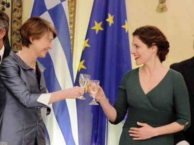 Μάλιστα, οι δυο κυρίες φάνηκε να έχουν θερμή επικοινωνία, κάτι που αποτυπώθηκε και στο στιγμιότυπο όταν τσούγκρισαν τα ποτήρια τους.