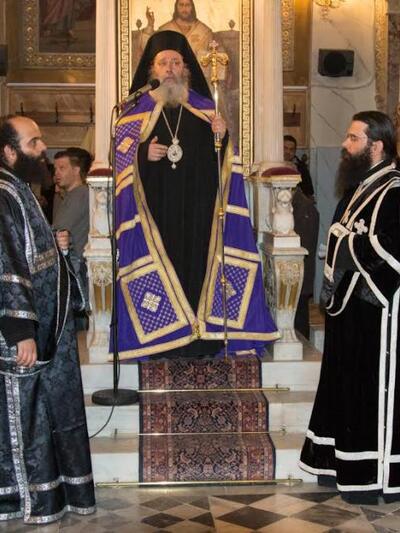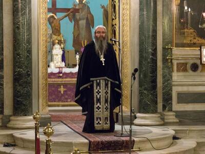 Ὁ Σεβασμιώτατος στὸ κήρυγμά του ἀνεφέρθη στήν σταυρική θυσία τοῦ Κυρίου ἡμῶν Ἱησοῦ Χριστοῦ καί στήν πλευρά Του, τήν ἀκήρατο ἀπό τήν ὁποία ἐξῆλθε τό ὓδωρ καί τό αἷμα , δηλ. τό Βάπτισμα καί ἡ Θεία Εὐχαριστία, δηλ. αὐτή ἡ ὑπόσταση τῆς Ἐκκλησίας, μέσα ἀπό τήν ὁποία σώζεται ὁ ἂνθρωπος.