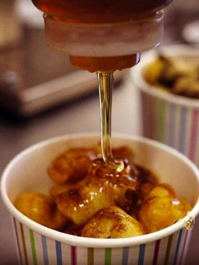 Επιλέγουμε λουκουμάδες με μέλι και κανέλα, αλλά και εναλλακτική πρόταση, γεμιστούς με νηστίσιμη κρέμα μπανάνα και μαύρη σοκολάτα!