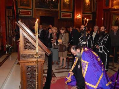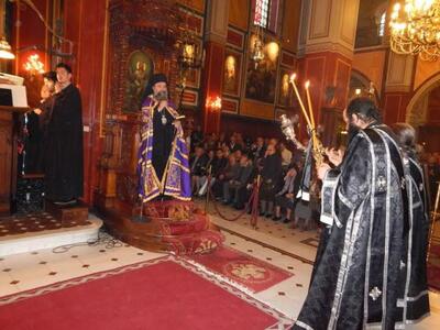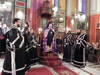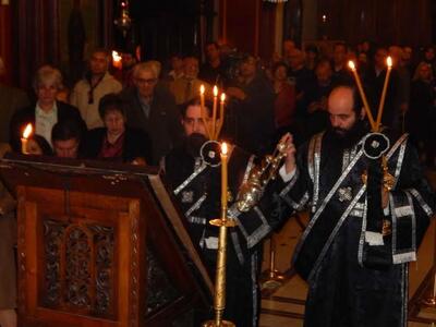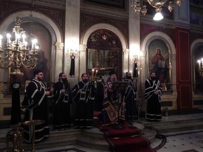 ● Ο Σεβασμιώτατος, προ της απολύσεως, ανεφέρθη εν ολίγοις στο περιεχόμενο του τροπαρίου της Κασσιανής και συνεχάρη τους χορούς των Ιεροψαλτών για την αρίστη απόδοση του θαυμασίου Δοξαστικού, που συνέθεσε η Μοναχή Κασσιανή τον Θ’ αιώνα στην Κωνσταντινούπολη και ευχήθηκε σε όλους καλή Ανάσταση.