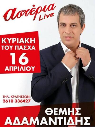 Ο Θέμης Αδαμαντίδης θα εμφανιστεί την Κυριακή 16 Απριλίου στα «Αστέρια».