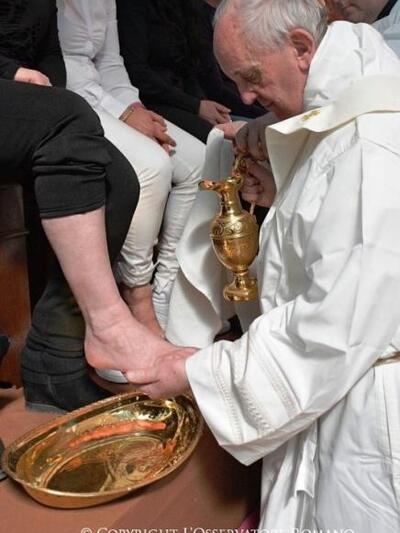 Ο πάπας Φραγκίσκος έπλυνε το απόγευμα της Μ. Πέμπτης τα πόδια 12 μετανοημένων κρατούμενων, –στην πλειονότητά τους πρώην μέλη της μαφίας– και τέλεσε την Ακολουθία του Νιπτήρος μέσα στη φυλακή, δείχνοντας έτσι και πάλι την αλληλεγγύη του προς τους φυλακισμένους. Σύμφωνα με την χριστιανική παράδοση, η Μεγάλη Πέμπτη είναι η ημέρα που ο Χριστός έπλυνε τα πόδια των Αποστόλων και προεικόνισε το μυστήριο της Θείας Ευχαριστίας με τον Μυστικό Δείπνο.