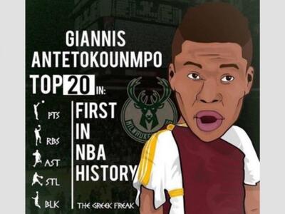 Ο πρώτος παίκτης στην ιστορία του ΝΒΑ που τερματίζει την κανονική περίοδο στο Τοπ 20 στις πέντε βασικές στατιστικές κατηγορίες έγινε ο Γιάννης Αντετοκούνμπο. Το κατόρθωμα του Έλληνα διεθνή άσου, έδωσε έμπνευση σε κάποιον να φτιάξει ένα σκίτσο με τον Γιάνναρο ντυμένο αρχαίο Έλληνα!