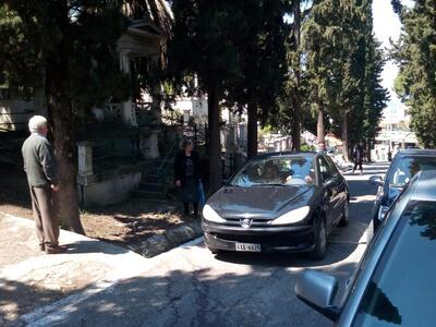 Στην πύλη δε υπήρχαν εργαζόμενοι του νεκροταφείου οι οποίοι ενημέρωναν τους οδηγούς για το τι θα συναντήσουν και τους προέτρεπαν να αποχωρήσουν από την πίσω πόρτα προκειμένου να αποφύγουν την ταλαιπωρία.