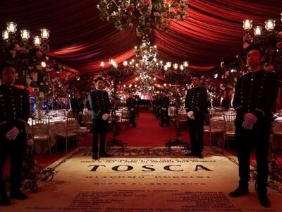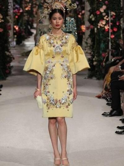Μια πασαρέλα πλαισιωμένη από αμέτρητες ανθοσυνθέσεις και μετά χρυσά τραπέζια μέσα σε κόκκινο βελούδο, με μενού το πολυαγαπημένο risotto ala milanese. Tα ρούχα όπως πάντα σαν άπιαστα έργα τέχνης, μακριά από καθημερινή πρακτικότητα… Τόσο περίτεχνα και σύνθετα λες και δεν ανήκουν σε αυτόν τον πλανήτη.
