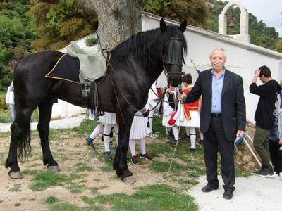 Στη συνέχεια, όλοι όσοι συμμετείχαν στην πομπή, μετά από πεζοπορία περίπου πέντε ωρών, κατέληξαν, στην κεντρική πλατεία του χωριού. Εκεί, όπως κάθε χρονιά έτσι και φέτος ο παπάς του χωριού, έσυρε πρώτος το χορό με όλους τους φουστανελάδες και ακολούθησε γλέντι με ψητά αρνιά, κόκκινα αυγά, κουλούρια και κρασί.