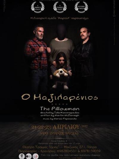 Η θεατρική ομάδα ‘’Καρτέλ’’ μετά από τις επιτυχημένες παραστάσεις του Οκτωβρίου στην Πάτρα (έκλεισαν με sold-out) και μετά από ένα θεατρικό ταξίδι ενός χρόνου με την παράσταση που απέσπασε 3 βραβεία στο πανελλήνιο φεστιβάλ ερασιτεχνικών θιάσων του Δήμου Ζωγράφου (1ου Ανδρικού ρόλου, 1ου Γυναικείου ρόλου και Πρωτότυπης Μουσικής) παρουσιάζει στις 21, 22 & 23 Απριλίου 2017 στο θέατρο "Γραμμές Τέχνης" το πολυβραβευμένο έργο του Ιρλανδού συγγραφέα Martin McDonagh ‘’Ο Μαξιλαρένιος’’ (The Pillowman).