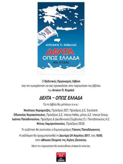 *Το βιβλίο σύμφωνα με πληροφορίες, αφορά στην ιστορία και την επιχειρηματική διαδρομή της ελληνικής γαλακτοβιομηχανίας «Δέλτα».