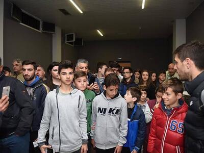 Μία εικόνα αξίζει όσο χίλιες λέξεις, από το ιστορικό γήπεδο της Παναχαϊκής. Μικροί φίλοι των «κοκκκινόμαυρων» και του ποδοσφαίρου, να στήνονται υπομονετικά στην ουρά, για πάνω από μία ώρα, για ένα αυτόγραφο και μία φωτογραφία με τα ινδάλματά τους.