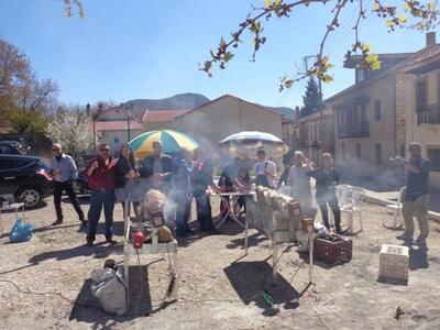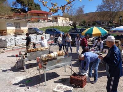 Ανήμερα οι μυρωδιές από τα σουβλιστά αρνιά απλώνονταν σε όλο το χωριό. Αρχίζει να καθιερώνεται συγγενείς και φίλοι να ψήνουν μαζί ώστε να ενώνονται μαζί σαν μία μεγάλη οικογένεια. Δεν ήταν λίγοι και αυτοί οι οποίοι σούβλιζαν το αρνί και το κοκορέτσι με τον παραδοσιακό τρόπο στα σπίτια τους ενώ άλλοι το έβαζαν στο φούρνο.