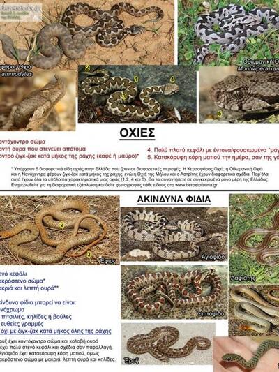 Αναφέρει εξάλλου σχετικά με τα φίδια πως η πλειονότητα που διασώζεται (μαζί με την Πυροσβεστική αλλά και τη χρήσιμη βοήθεια της ομάδας Δ.Ι.Α.Σ όπως τις προάλλες) είναι είδη μη δηλητηριώδη όπως Λαφιάτης, Εφιός, Σαίτα, Δεντρογαλιά, Σπιτόφιδο κλτπ. Αυτά τα φίδια ζουν μέσα ή στα περίχωρα πόλεων και μπορεί να τα συναντήσει κανείς στο εσωτερικό μιας αποθήκης, ενός σπιτιού ή ενός αυτοκινήτου.
