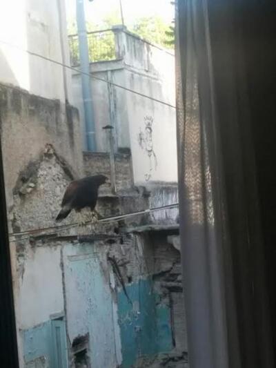 Ένας απρόσμενος επισκέπτης βρέθηκε σήμερα στο κέντρο της Πάτρας. Η... γερακίνα που βλέπετε στις φωτογραφίες απαθανατίστηκε από αναγνώστη του thebest να απολαμβάνει τη...θέα, σκαρφαλωμένη σε ένα καλώδιο!