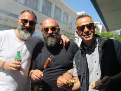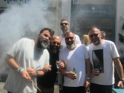 "Έκλεισε" η Μαιζώνος χθες Κυριακή μεσημέρι για τρεις Γιώργους που γιόρτασαν από κοινού στο wine bar - ντελικατέσεν Αχαϊκών Προϊόντων "Κελλάρι". Ο λόγος για τους Γιώργο Κυριακόπουλο, Γιώργο Στασινόπουλο και Γιώργο Στυλιανό (George Berman) που δέχθηκαν ευχές από δεκάδες φίλους σε εορταστικό κλίμα.